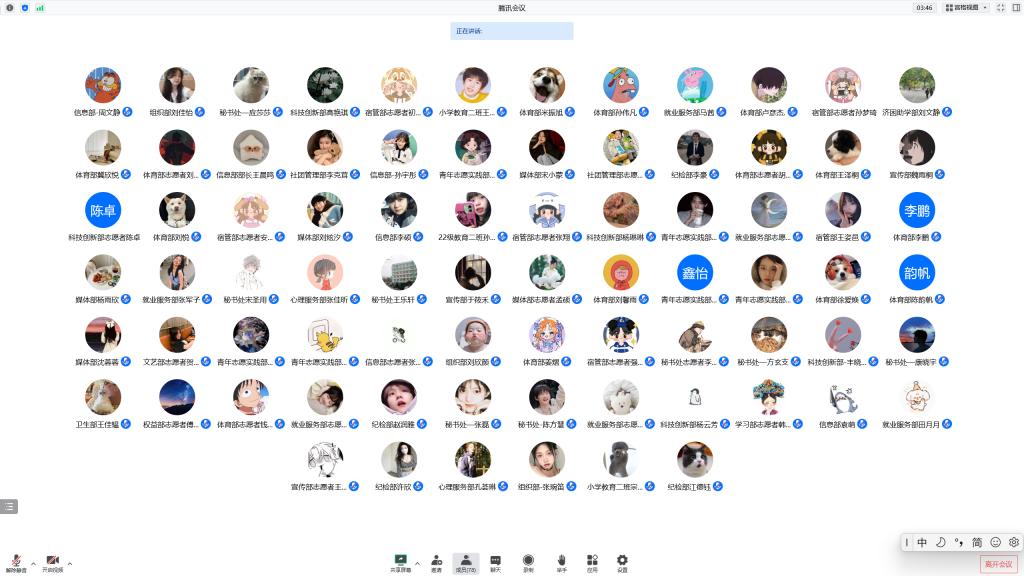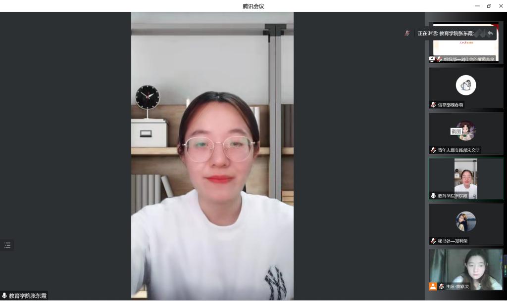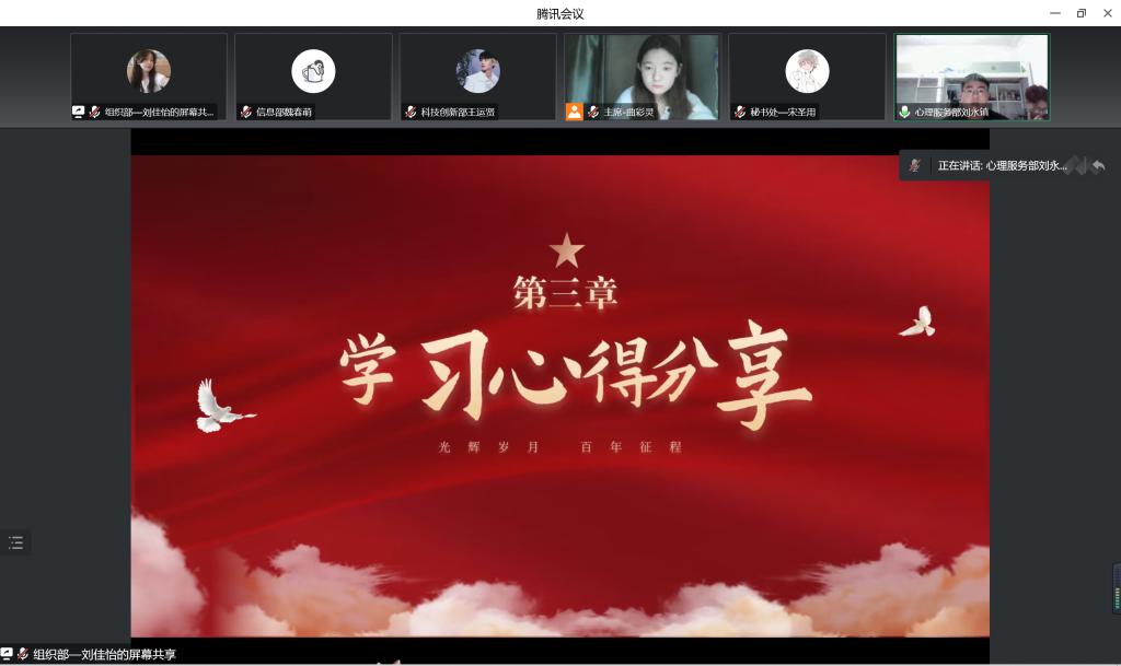 学习结束后,主席团代表、部长代表、副部长代表和志愿者代表分享交流学习心得。各位代表的发言既有高度又有深度,生动展现了自己的学习成果。大家纷纷表示,作为一名学生干部,将会在青年群体中积极发挥模范带头作用,不断提高自身素质能力,全心全意为同学服务,在团结互助中绽放青年的光和热,做合格的新时代“答卷人”。