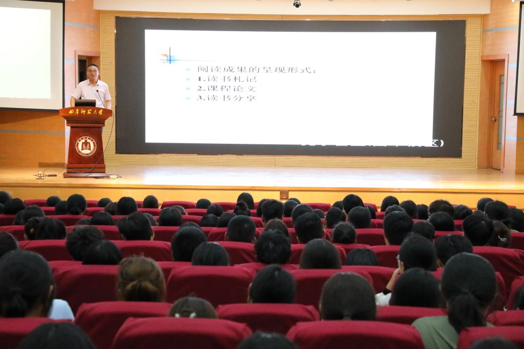 徐瑞教授从学生生涯规划的角度,进行了题为“规划—专业·读书·生活”的新生入学教育专题讲座。他多层次、多角度、多方面地讲解了学院本科特色教学“一课一本”计划在培塑本科生扎实的专业素养,提升学生继续深造和适应社会的能力等方面所起到的推进作用。他强调,对于文科大学生来说,最重要的学习方式就是读书,更重要的则是阅读与专业相关的书籍。