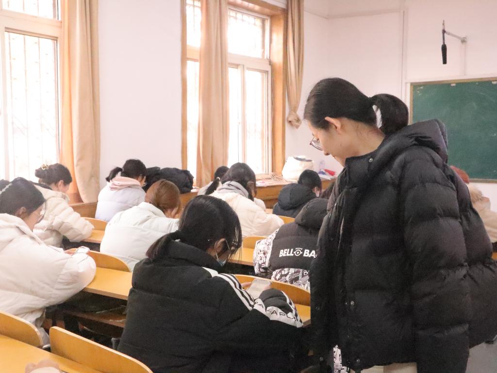学院辅导员张东霞来到集中学习现场,了解同学们的学习情况并给予学习指导,同时强调同学们要树牢廉洁自律意识,严于律己,以实际行动践行廉洁准则。