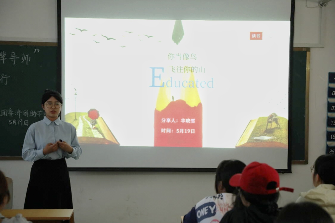 活动进行时,朋辈导师们各展风采。21级教育一班高玉锦向大家阐述阅读专业经典名著的重要性,分享阅读经验,同时,采用生活化的口吻,结合个人经历,和同学们共同探索专业名著的阅读方法。随后,21级教育一班丰晓雪以“《你当像鸟飞往你的山》——读书·读心”为主题,从作者简介、主要人物、内容赏析和关于教育等四个方面,向同学们系统地阐述了小说主人公塔拉的人生与教育经历,与同学们互动交流,深入探究关于教育问题的思考。活动要求参与活动的同学自主阅读并在规定时间内提交读书汇报,朋辈导师将综合学生的课堂表现和读书汇报情况,对学生进行全面评估。