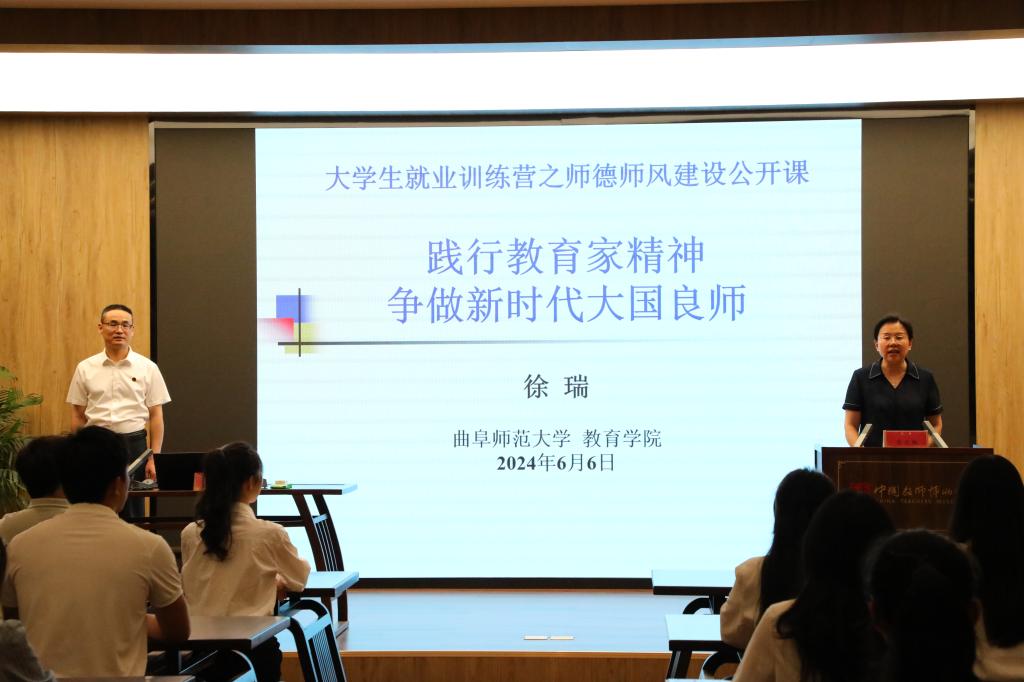 承办的“大学生就业训练营”之师德师风建设公开课于教师博物馆顺利举办。本次公开课由学生工作处处长姜美颖主持,特邀教育科学研究院副院长徐瑞教授作“践行教育家精神,争做新时代大国良师”主题报告,全校各学院即将入职教师行业的2024届毕业生代表参加活动。