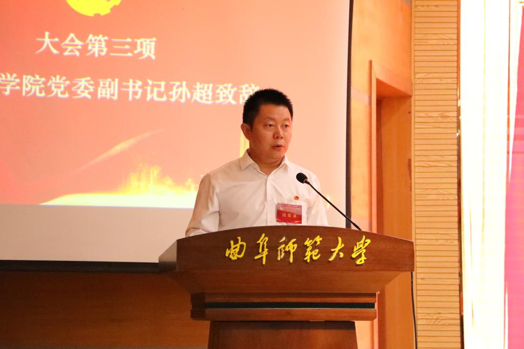 孙超代表学院党委向大会的召开表示祝贺,并向学院全体团员青年致以诚挚问候。他指出,近年来学院不断加强团员队伍建设,真抓实干、锐意进取,在学生安全稳定、学风建设、科研创新、社会实践与志愿服务、高质量就业等方面取得了显著成效。他希望在座的团员青年都能将个人的理想追求与国家的前途命运紧密结合起来,在实践中放飞青春梦想。他表示,学院将继续坚持党建带团建,为共青团工作顺利开展营造良好的环境和条件,全力推动学院团委工作再上新台阶。