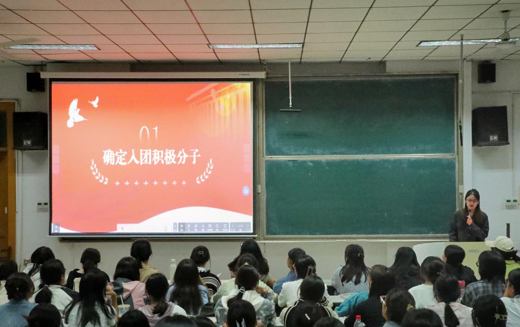 在“青春团聚梦启航,奋楫扬帆谱华章”发展团员流程普及讲座中,李晓雯主要从发展团员的基本要求和基本流程进行介绍,帮助新同学们了解入团相关事宜,为同学们提供具体指导。