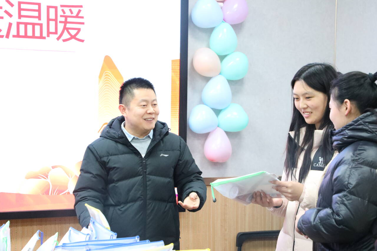 随后,领导老师们为同学们发放精心准备的暖心慰问品,并为同学们送上带有个人名字的“定制”贺卡,每张贺卡都是经过辅导员亲笔签名,并饱含着学院师弟师妹们的真挚祝福,意在鼓舞同学们“研”途花开,成功上岸。
