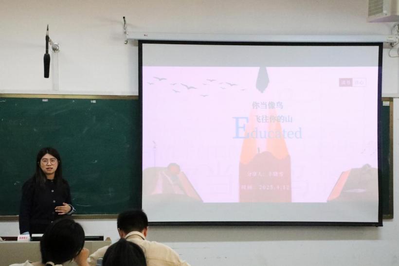 丰晓雪围绕《你当像鸟飞往你的山》展开读书分享。她从作者简介、主要人物、内容赏析和关于教育四个模块展开讲授,剖析了小说主人公塔拉突破原生家庭桎梏,追寻自我价值的历程,并且通过问题探究等方式与同学们探讨教育对人认知重塑的重要性,鼓励同学们以更从容的姿态拥抱生活。