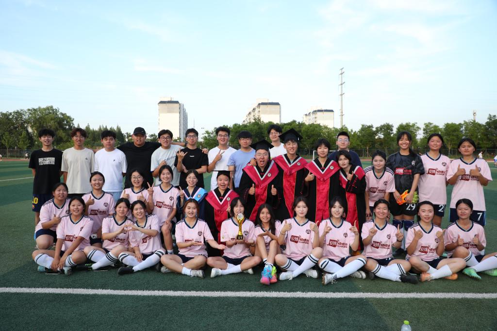 2025年“毕业杯”足球赛在欢呼声中圆满收官。经过激烈角逐,教育心理女足联队以过硬的技术和卓越的竞技状态,在绿茵场上再续传奇,继连续两年斩获“毕业杯”冠军后,凭借默契无间的团队协作与坚韧不拔的拼搏精神,第三次站上了冠军之巅,用汗水与团结续写荣耀篇章。