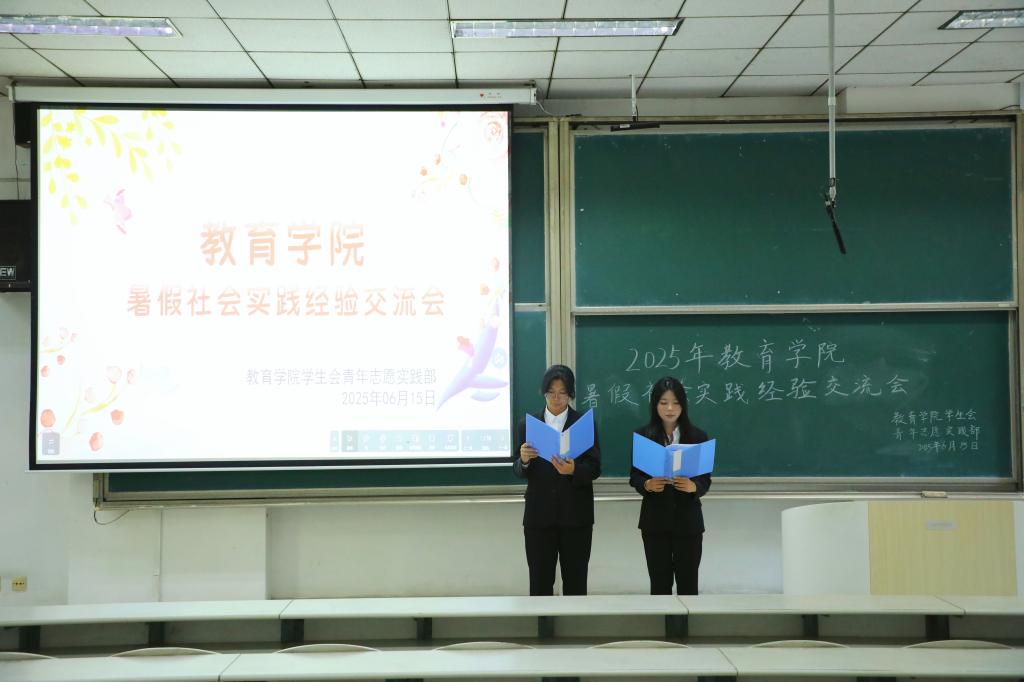 于综合楼106教室成功举办暑期社会实践经验交流会。本次活动特邀五位在过往实践中表现卓越的学生代表,围绕项目实施全周期进行深度分享。