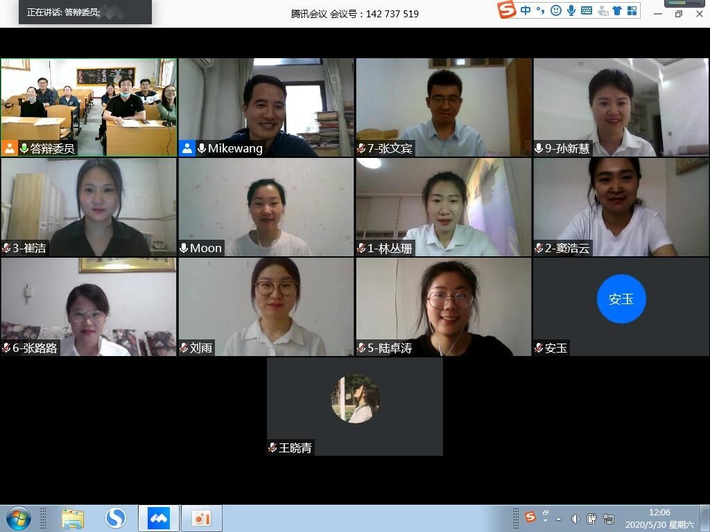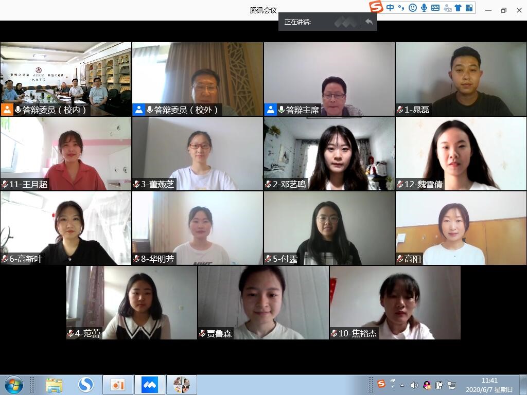 为保障答辩工作顺利开展,学院领导高度重视,研究制定出详细的答辩工作程序,组织线上答辩秘书培训会议,反复开展设备使用培训及前期调试。每组秘书分别对答辩小组进行模拟演练,并通过微信、QQ等社交软件,解决回答学生的各种问题,确保特殊时期答辩工作和学位论文质量“不缩水”。