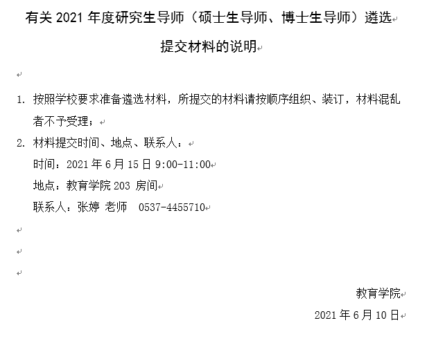 有关2021年度研究生导师(硕士生导师、博士生导师)遴选提交材料的说明