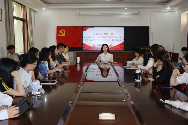 随后,党支部成员通过“以案四说”对高校系统及教师教育领域违纪反面典型案例进行剖析,以主题党日支部“廉”播的形式,引导党员同志反躬自省、警钟长鸣。