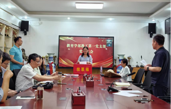会上,高伟向全体党员介绍了此次支部委员会选举工作的筹备情况及会议流程。会议根据《中国共产党章程》《中国共产党基层组织选举工作条例》有关规定,通过了支部委员会委员候选人名单、大会选举办法和监票人名单,选举产生了高伟、孟志远、李宁宁、臧文娟、任炜华等5名同志为教育学部教工第一党支部委员会委员。