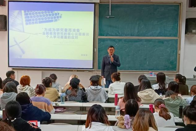 邀请新加入学院学术共同体的李凯副教授在综合楼101教室为2019级全体学生带来了一场题为《为成为研究者而准备:当前教育研究的核心议题兼谈个人学习层面的应对》的学术报告。周日下午的综合楼101教室,座无虚席。报告开始前,品凤楼