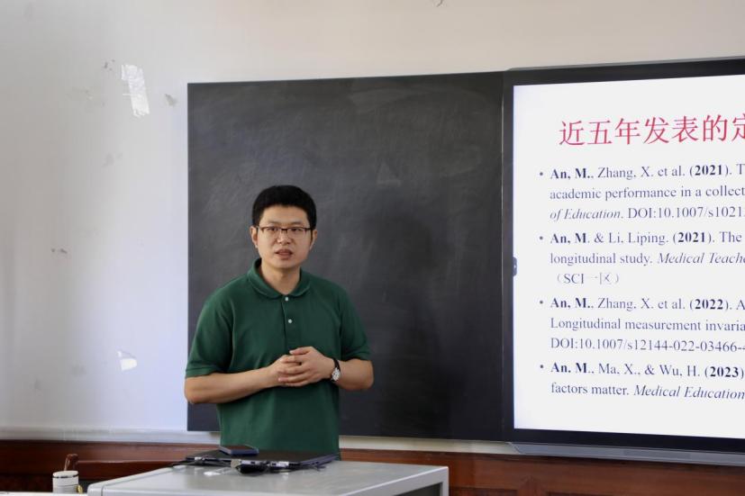 副教授安敏作题为《定量研究与定量研究论文:从构思、写作到发表》的学术报告。报告会由品凤楼